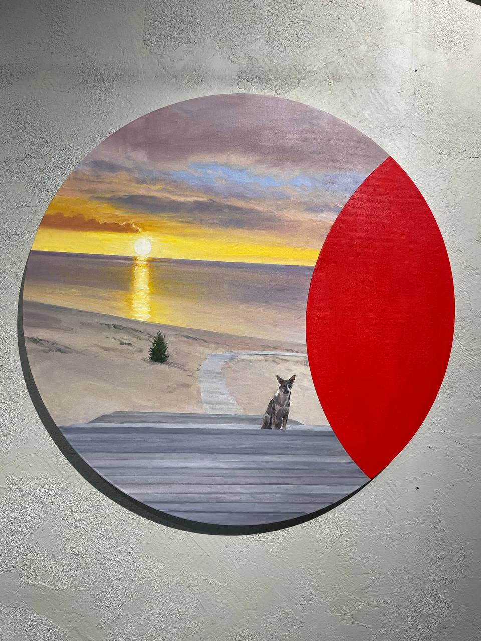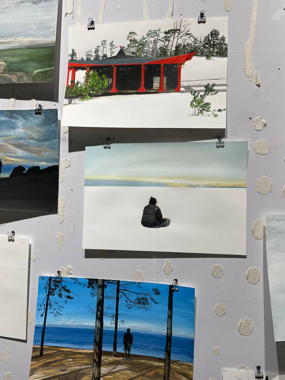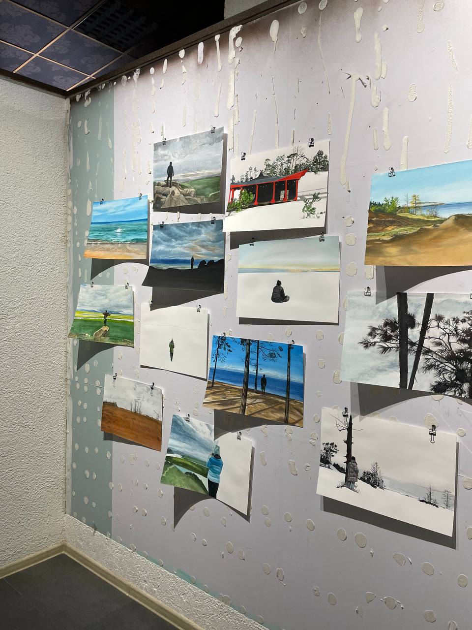 Сами художники рассказали, что в арт-резиденции ловили вдохновение буквально повсюду. Они рисовали озеро, горы, леса и, конечно, людей. Одной из центральных работ стал квадриптих Евгении Войнар. На нем она изобразила ночной Байкал в необычных цветах. Сама художница рассказала, что сперва сделала кадры на фотоаппарат, а затем перенесла их на холст.