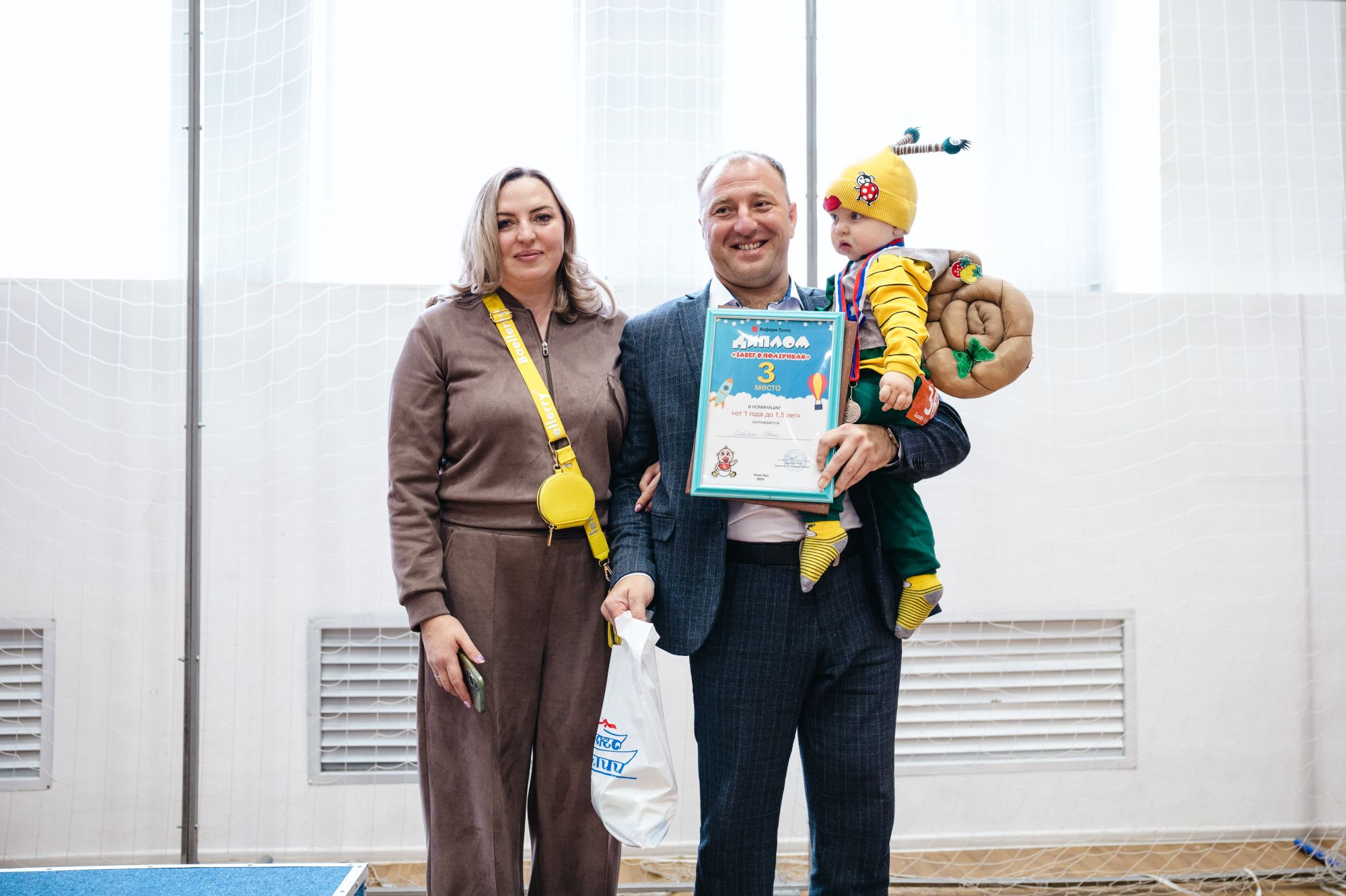 Родителям особенно важно сохранить для своих малышей тёплые воспоминания о первых годах жизни и их участии в настоящих спортивных соревнованиях. Каждый маленький участник «Забега в ползунках — 2025» получил диплом об участии, а семьи с энтузиазмом соревновались в дополнительных номинациях: «Самый оригинальный костюм», «Самая активная группа поддержки» и др. Мамы и папы с удовольствием снимали своих малышей на фото и видео, а яркая фотозона стала одним из самых популярных мест праздника.