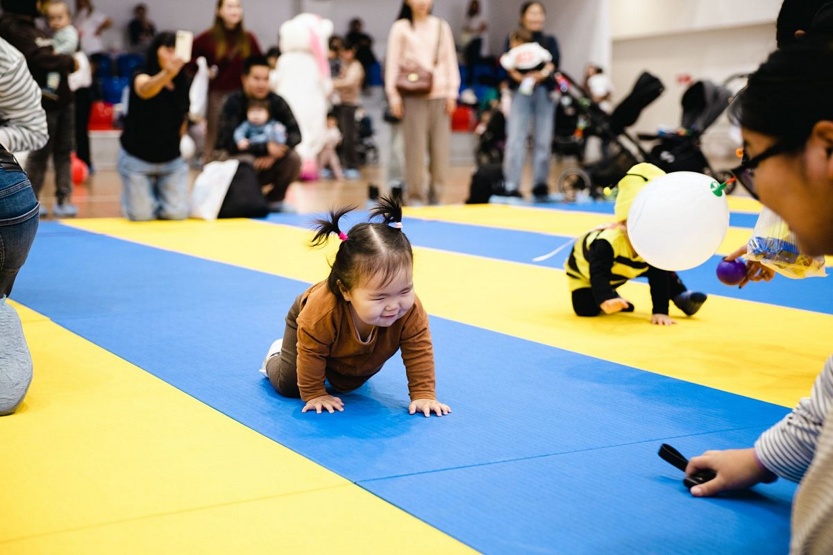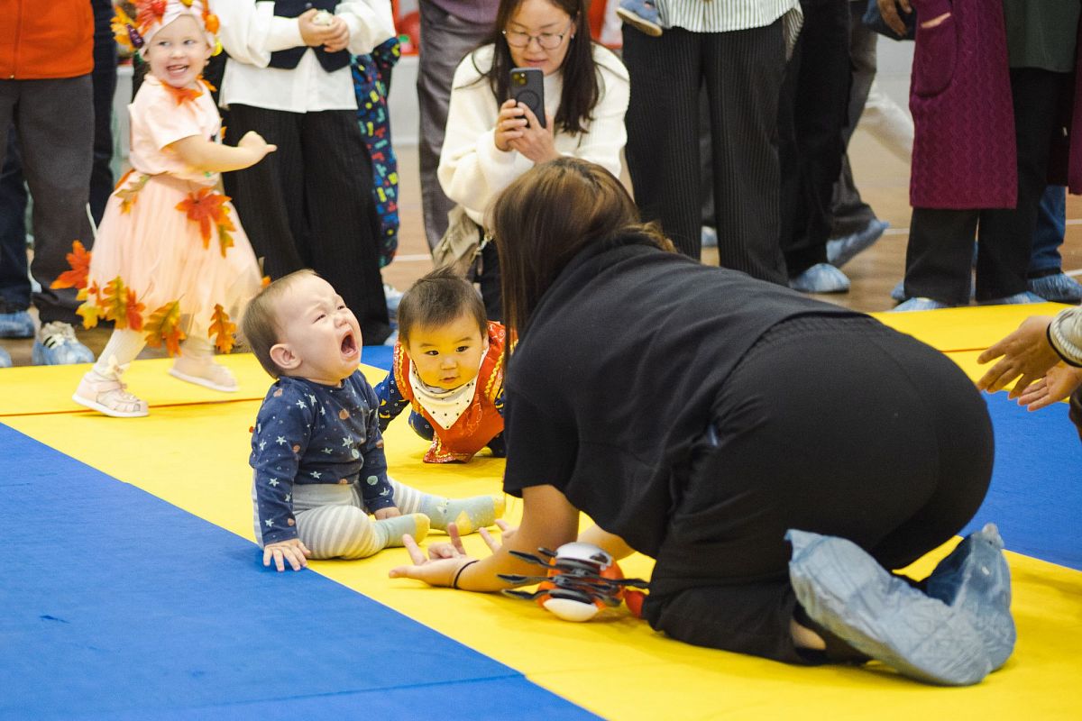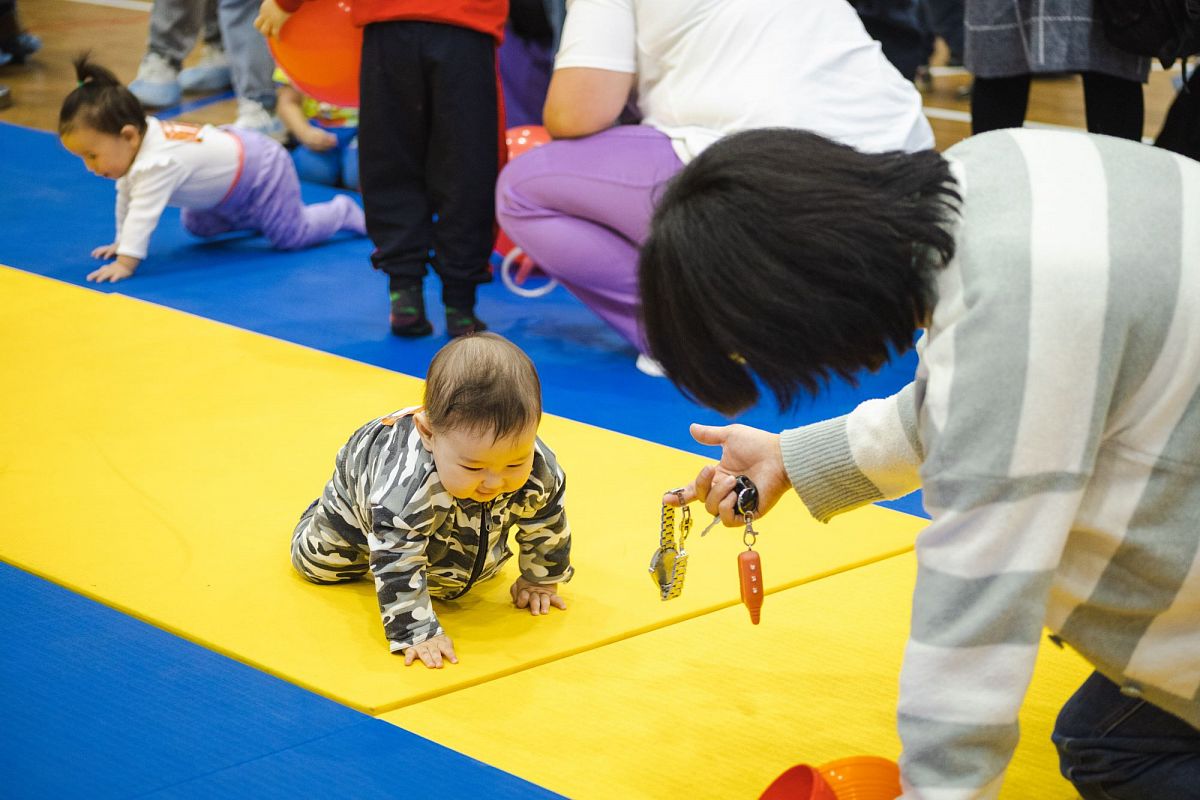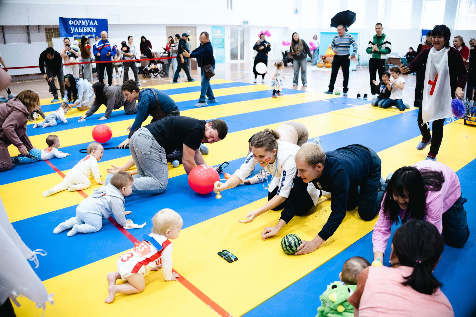 Малыши соревновались в четырёх возрастных группах: от шести месяцев до года — в ползунковых гонках, от года до полутора — также «ползунки», а участники от полутора до трёх лет уже бежали сами. Предстояло преодолеть всего-то пять метров, но какие баталии развернулись.