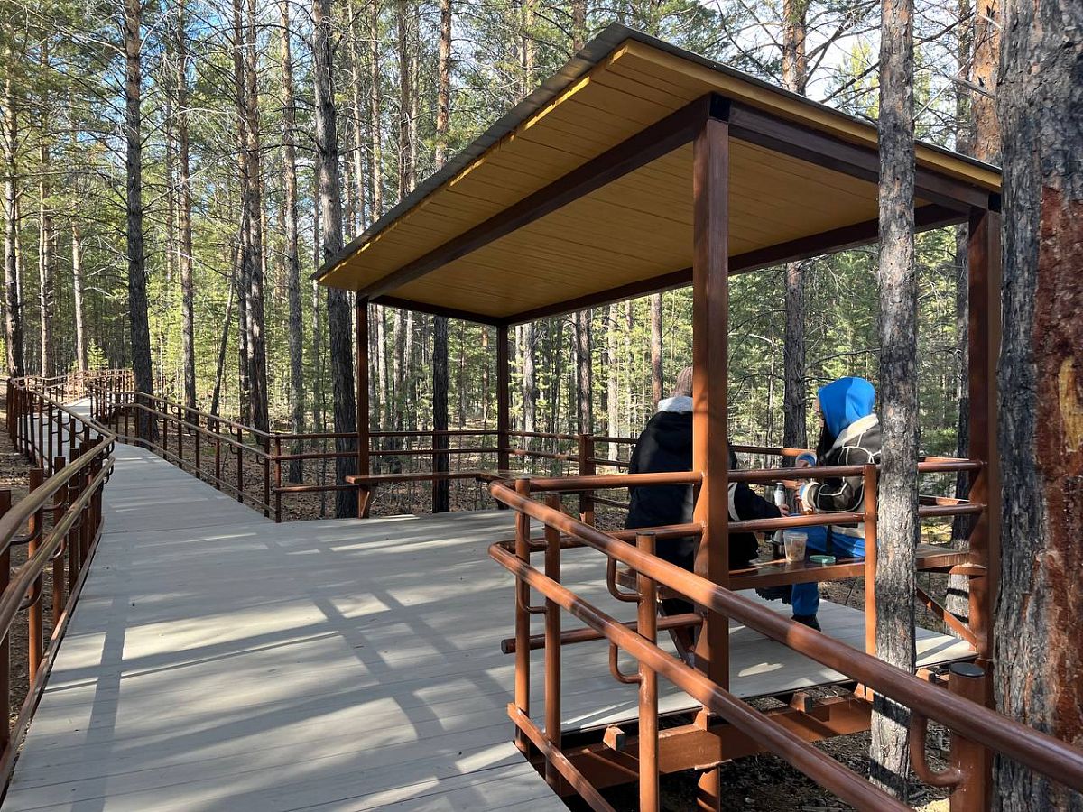 Протяженность: 1,09 км в одну сторону. Точки входа / точки выхода: Этнографический музей. Оборудованная настилом из террасной доски. Подходит для маломобильных людей. Степень уклона позволяет передвигаться по тропе на колясках. Для желающих имеется кольцо длиной 340 метров с чуть повышенным уклоном. Оборудована перилами, разъездными карманами, размер которых позволяет спокойно отдохнуть по пути или развернуться. На всем протяжении растёт багульник. Тропа начинается от парковки перед входом в Этнографический музей.