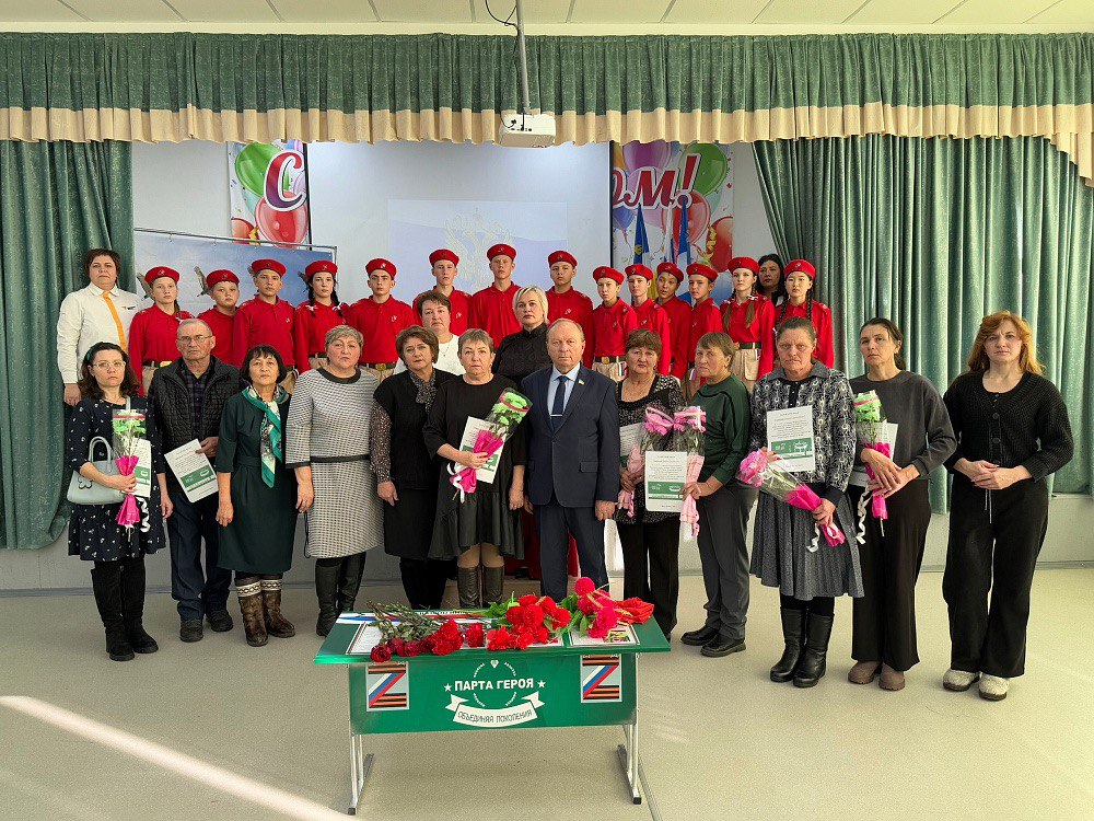 Бэшүүрэй аймагай Охин-Булагай hургуулида «Баатарай парта» гэhэн бүхэроссиин болбосоролой проектэдэ хабаадана. Энэ хэмжээ ябуулгада Буряад Уласай Арадай Хуралай Түрүүлэгшэ Владимир Павлов ерэжэ, баатарай үхэлөөр унаhан хүбүүдэй гэртэхиндэ баярай бэшэгүүдые барюулаа.