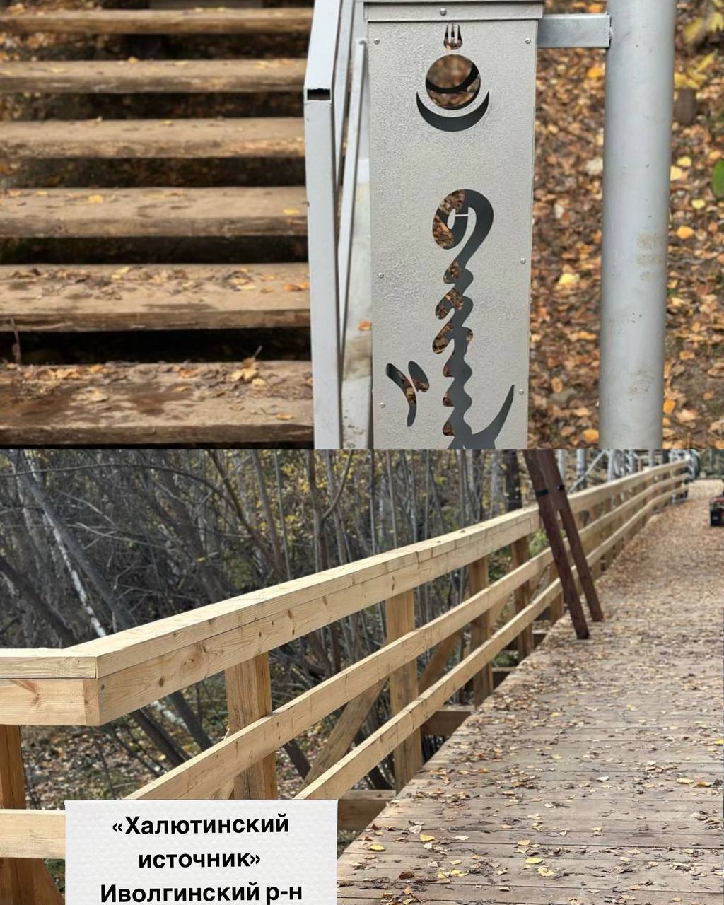 6) В Иволгинском районе завершилось благоустройство туристской тропы «Халютинский источник». Здесь установлены информационные аншлаги, раздевалки, скамейки, столы, автономное освещение, указатель Халюта.