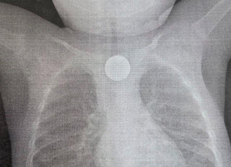Ситуация усугубилась спустя два часа, у малыша поднялась температура и появились хрипы при дыхании, что стало поводом для обращения за медпомощью в ЦРБ. В районной больнице диагностировали инородное тело пищевода, после чего ребенка направили в ДРКБ.