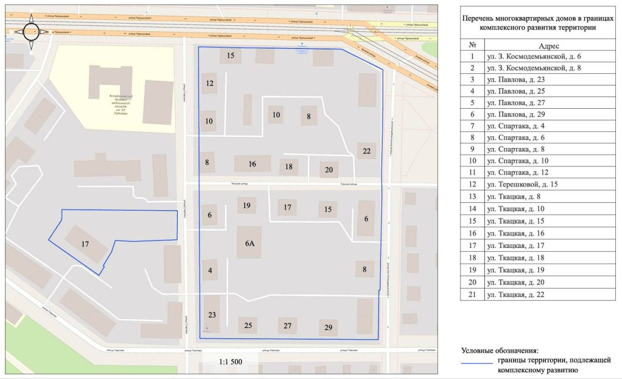 Участок расположен в границах улиц Зои Космодемьянской, Павлова, Спартака и Терешковой. Территория включает 21 многоквартирный дом, среди которых преобладают старые деревянные постройки — два из них уже официально имеют статус аварийных.