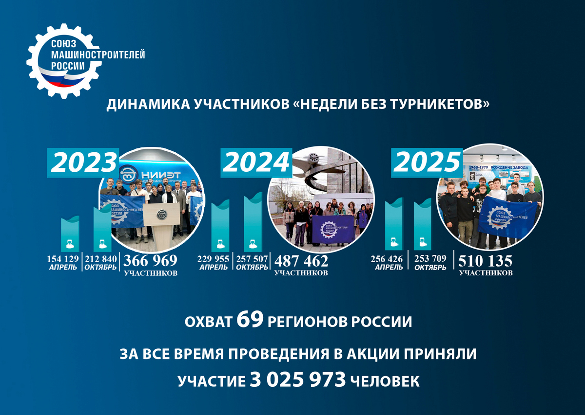В 2025 году Всероссийская акция «Неделя без турникетов», реализуемая Союзом машиностроителей России при поддержке предприятий и образовательных организаций, отметила своё десятилетие. За это время проект стал одним из главных профориентационных инструментов страны, знакомящим школьников и студентов с современным производством и инженерными профессиями. Акция проводится дважды в год - в апреле и октябре, ее формат позволяет будущим инженерам увидеть реальные производственные процессы, познакомиться с технологиями и попробовать себя в роли специалистов разных направлений.