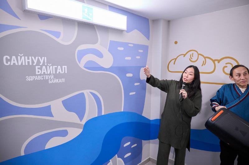 — Плавно спускаясь, гость проходит три ступени посвящения. Сначала встречает лёгкое дыхание неба, где ещё слышится гул самолёта. Затем возникает твёрдая опора земли, встреча с древней культурой и корнями края. Наконец колышется таинственная глубина, священная гладь Байкала, сердце и душа республики. В образах росписи перекликаются времена: здесь и Ан-2, когда-то царившие в бурятском небе, и силуэты вертолётов — отголосок современных достижений, и сэргэ — древний столб для коней, что становится мостом к нынешним «воздушным коням» — самолётам, связывающим эпохи, — рассказала Мария.