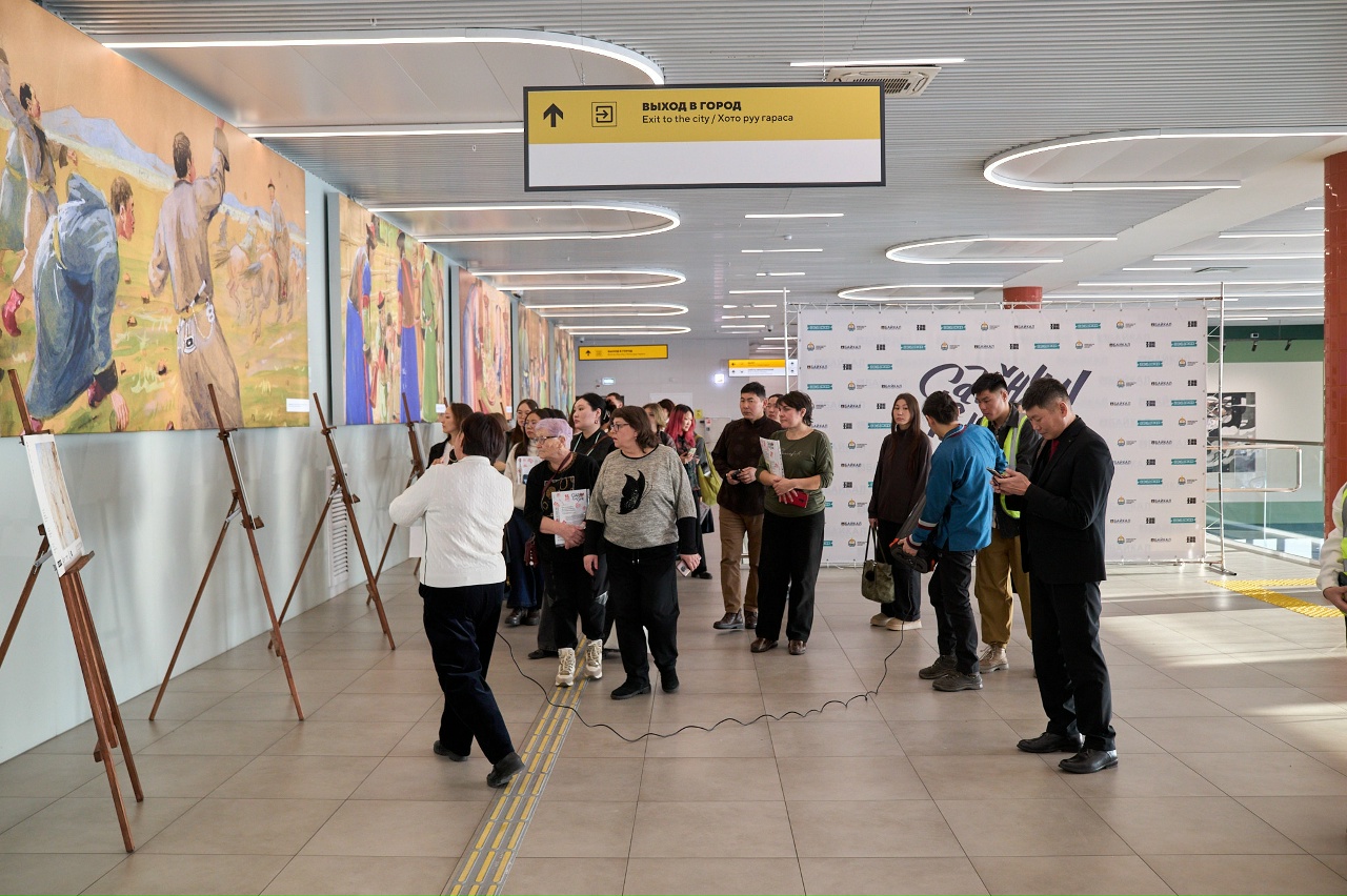 Завершающим акцентом стала выставка «Сокровища Бурятии» (6+). Экспозиция состоит из лучших произведений бурятских художников из коллекций Нацмузея Бурятии. Она дает возможность каждому пассажиру прикоснуться к творческому наследию республики. Работы Цыренжапа Сампилова, Буды Садыкова, Александра Тимина и других художников погружают в историю, культуру, быт бурятского народа.