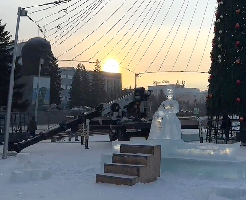 На центральной площади Улан-Удэ начали возводить новогодний ледовый городок. Как сообщили в мэрии, с наступлением устойчивых морозов удалось заготовить лед толщиной около 40 сантиметров – он уже доставлен на площадку. Скульпторы приступили к созданию 31 ледяной композиции.