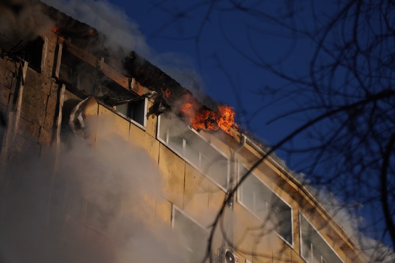 На 1 и 2 этажах сигнализации слышно не было, а вот на 3-м люди услышали тревожный сигнал и запаниковали. Сперва повалил черный дым, а затем по потолку пошло пламя – огонь начал распространяться быстро. Кто-то схватил документы, чтобы спасти их от пламени. Другие побежали к огнетушителям. Первый из них не сработал вообще, а второй, вероятно, оказался неисправен и быстро перестал работать.