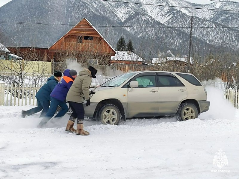 В Бурятии спасатели вызволить авто из снежного плена