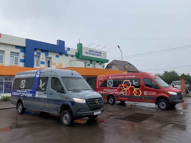 Вовлечение в техническое творчество только детей г.Улан-Удэ показалось несправедливым и командой единомышленников была подана заявка на открытие Мобильного Кванториума через федеральный проект «Успех каждого ребенка». Так, у нас появился автомобильный комплекс «Серебряная стрела». Стрела, как символ целеустремленности, остроты мысли – необходимых качеств для изобретателя, впервые в октябре 2019 года повезла знания по самым крупным школам республики. А в 2020 году был запущен второй мобильный технопарк под названием «Красная стрела». Каждая машина оснащена мини-лабораторией, пятью посадочными местами. На таких передвижных образовательных комплексах работают 10 педагогов, они ведут обучение шести ключевым инновационным направлениям: