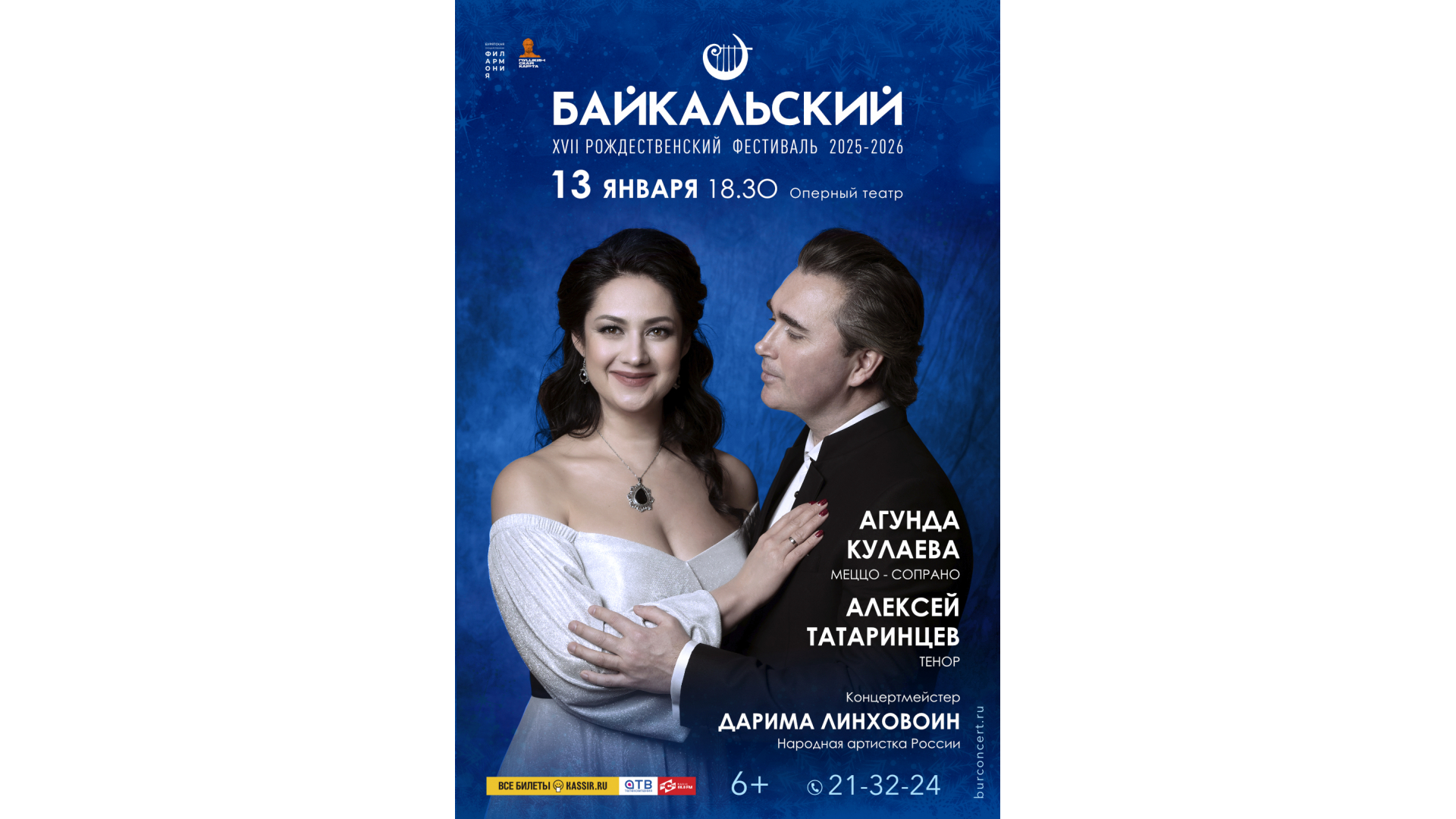 13 января в Бурятском театре оперы и балета состоится грандиозный концерт звёзд российской оперы: солистка оперной труппы Большого театра России, заслуженная артистка РФ Агунда Кулаева и лауреат премии «Золотая маска» и приглашённый артист Большого театра Алексей Татаринцев исполнят арии и дуэты из опер Доницетти, Верди, Гуно, Римского-Корсакова, романсы Чайковского и Рахманинова и многое другое.