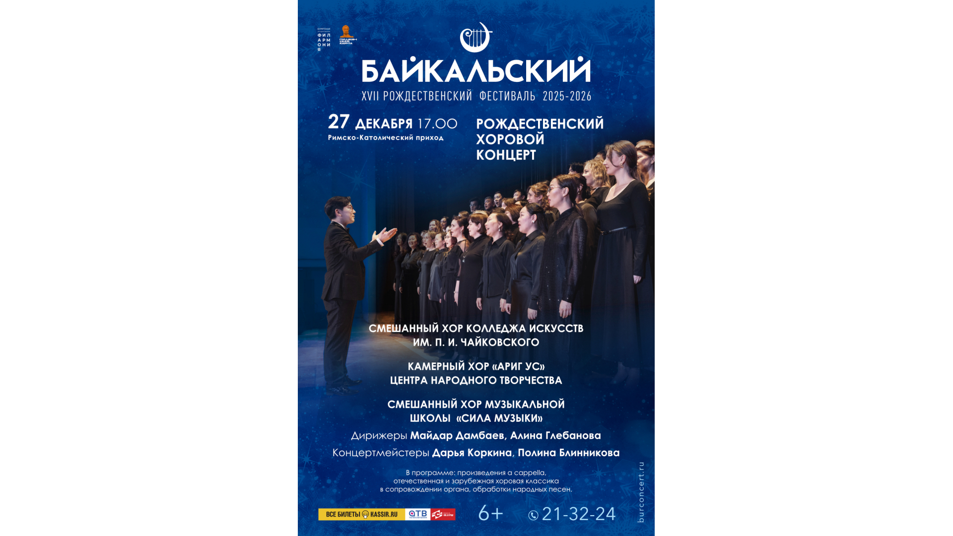 В этом году Байкальский рождественский фестиваль (6+) проходит уже в 17-й раз, и за это время он завоевал искреннюю любовь улан-удэнских зрителей. У истоков фестиваля стояла Бурятская государственная филармония, которая по сей день является организатором мероприятия.