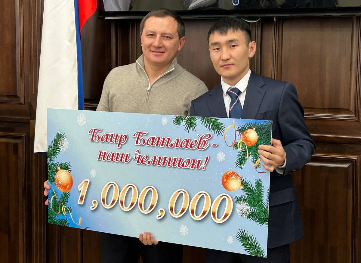 Серебряному призеру чемпионата мира по боксу Баиру Батлаеву подарили 1 миллион рублей.
