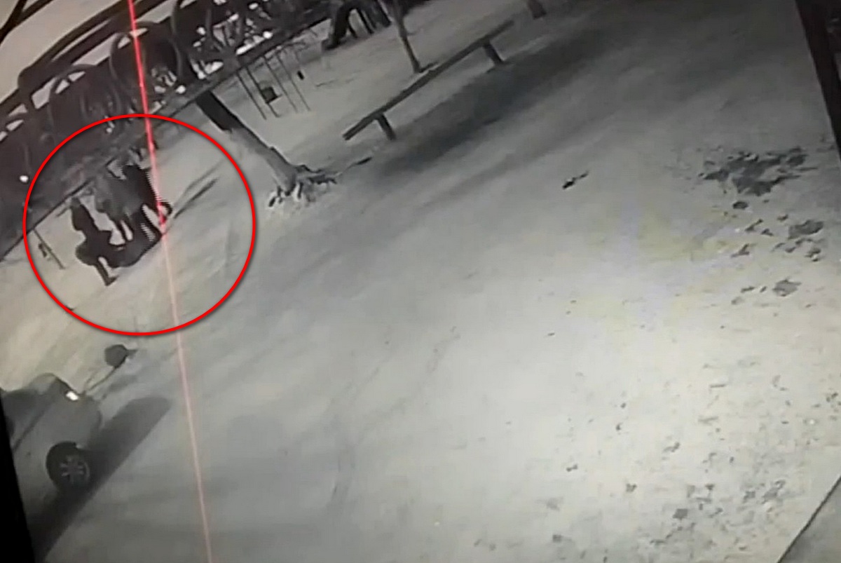 Позже возле компьютерного клуба молодые люди вступили в конфликт с несовершеннолетним посетителем. Один из них избивал подростка, а его приятель в это время демонстрировал нож окружающим, не давая вмешаться и помочь пострадавшему.