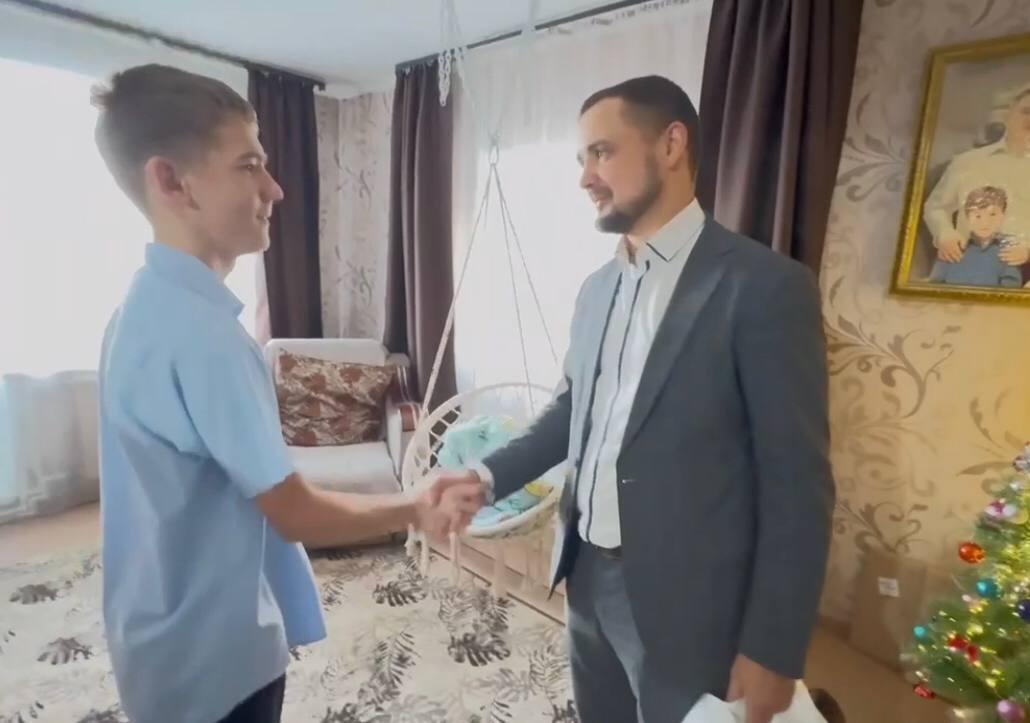 Министр спорта Иван Козырев приехал в гости к Саше. Вместе они говорили о тренировках, характере, упорстве и о том, что настоящий борец побеждает в первую очередь обстоятельства. У Саши большая и дружная семья: папа, мама, брат Максим, две кошки, а скоро родится сестренка.