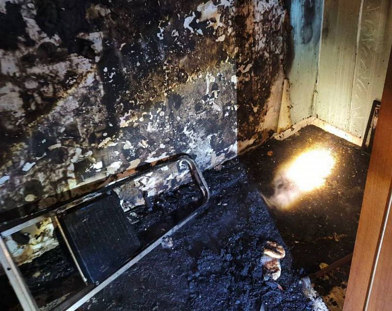 В результате пожара огнем был поврежден диван на площади около двух квадратных метров.