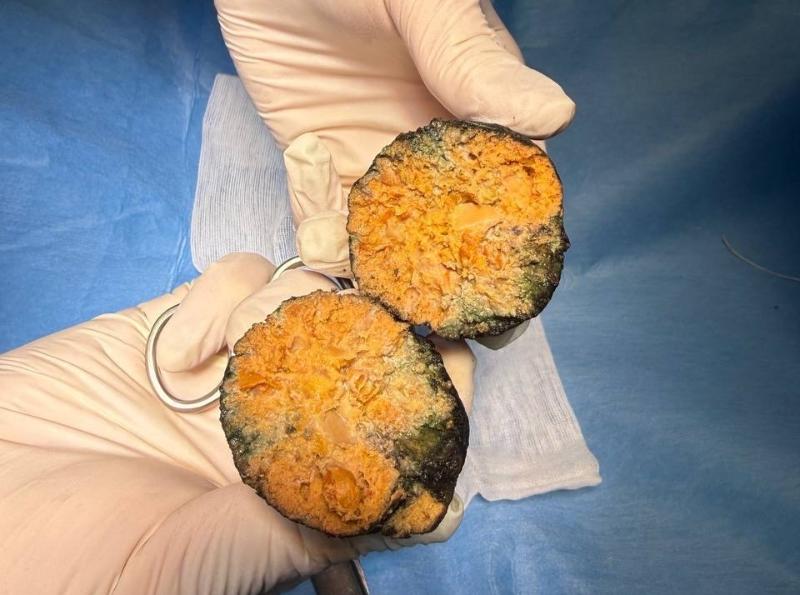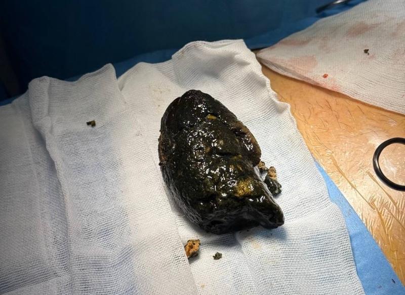Как рассказали в пресс-службе больницы, в конце ноября 2025 года молодой человек перекусил тремя плодами хурмы и запил обычным молоком. В последующие дни он начал испытывать боли в животе. Обследования показали наличие фитобезоара. Фитобезоар — это плотный камень, который образуется в желудке из-за большого количества неперевариваемых растительных волокон и танинов, особенно в незрелых плодах, слипшихся в комки.