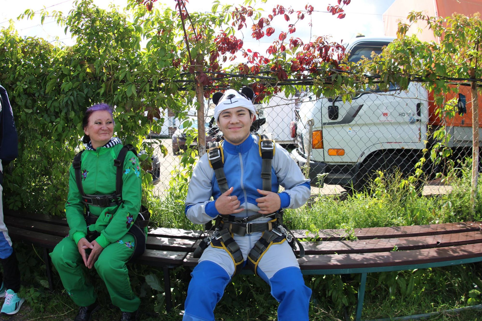 Сначала, когда сел в самолёт, чувствовал себя нормально. А когда я посмотрел вниз, там не было видно земли, облака только. Инструктор сказал: «Ноги подгибай!» Я крикнул: «Нееет!» Но он резко сделал сальто, и мы полетели. Это было круто.