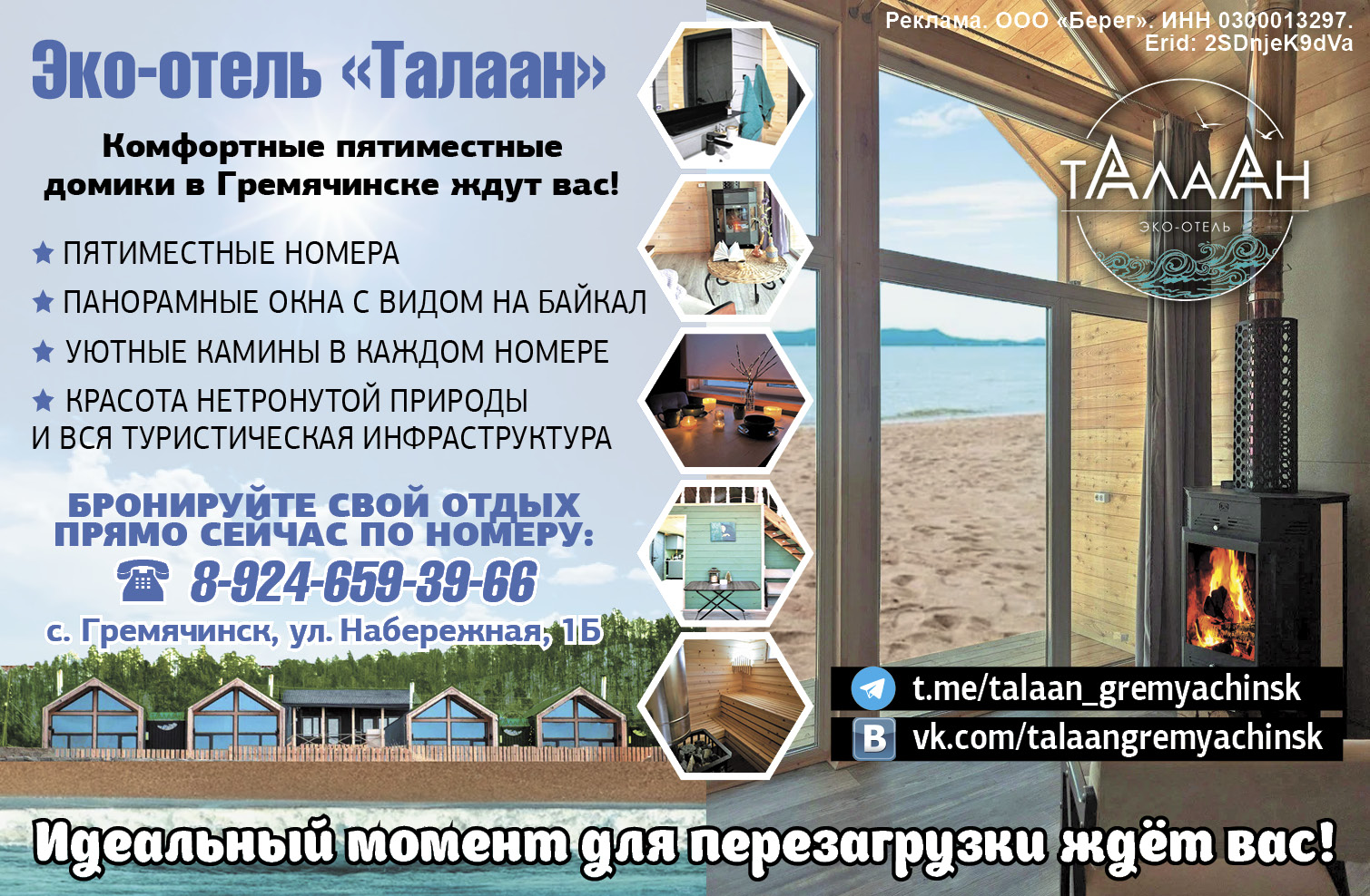 Увидеть красивый рассвет в панорамных окнах, едва подняв голову с подушки, можно в экоотеле «Талаан». Уютные барн-хаусы буквально созданы для того, чтобы спасти вас от плохого настроения и трескучего мороза. Экоотель работает круглый год, и все сезоны здесь хороши по-своему. Так что возьмите с собой телефон с хорошей камерой: она вам точно пригодится для зимних фотосессий на закате!