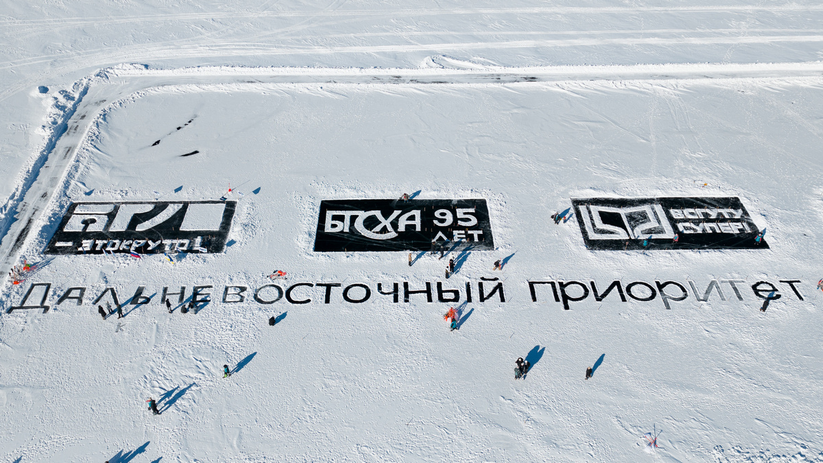 Иностранные студенты создали снежную открытку на льду Байкала в Бурятии
