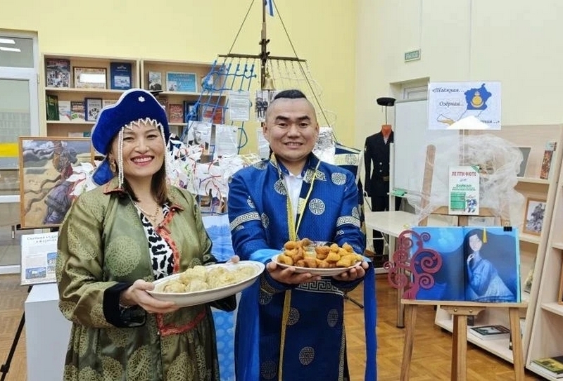 Сотрудники библиотеки подготовили тематический стол по бурятским обычаям. Посетителям предложили буузы, боовы, табаг и традиционные молочные продукты.
