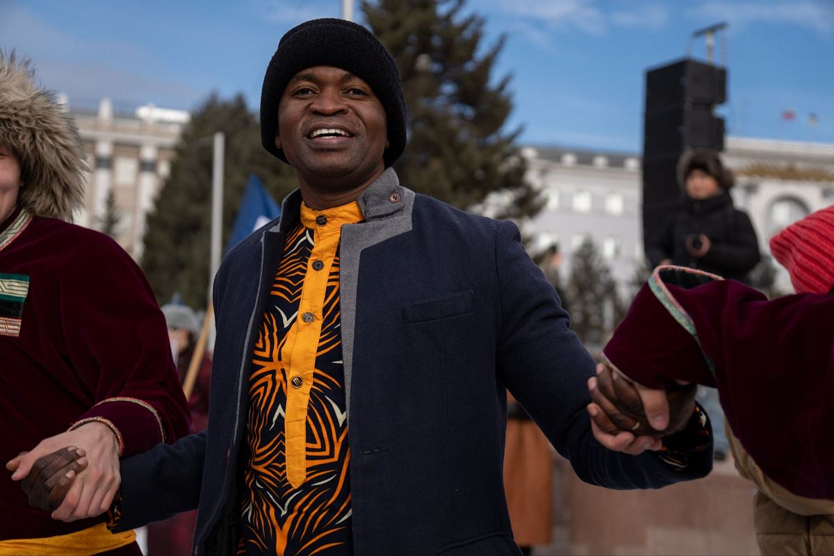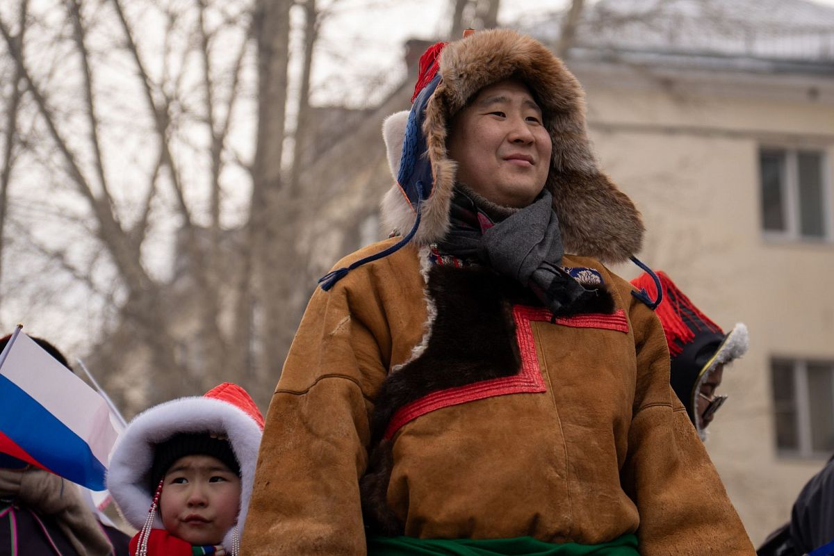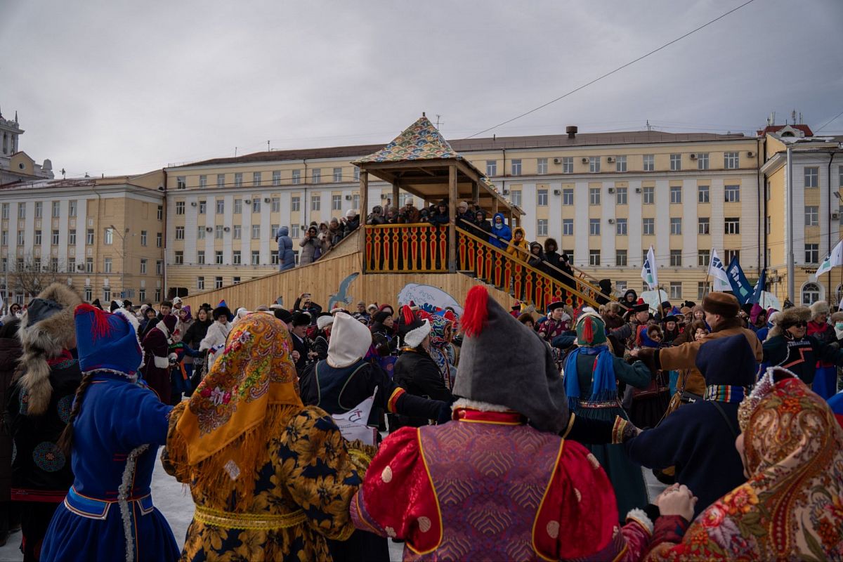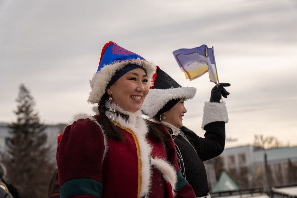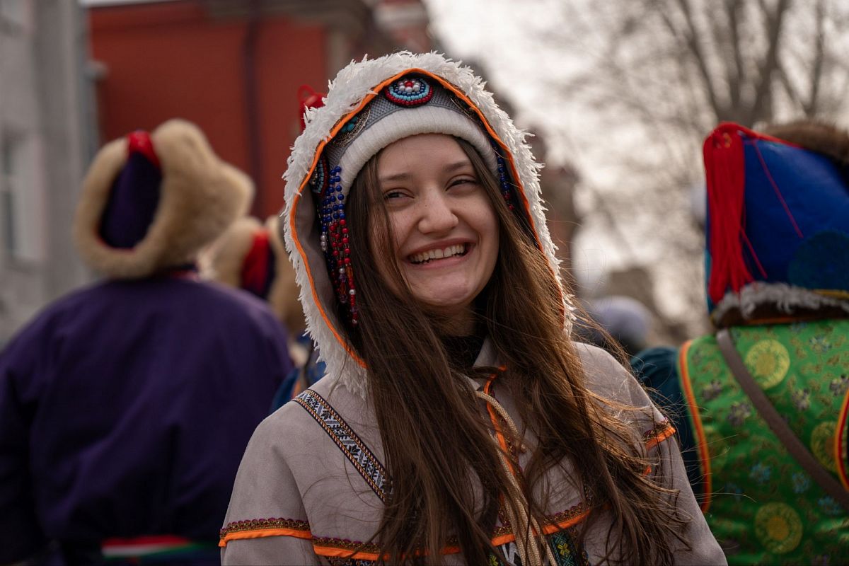 Сотни людей в изысканных национальных костюмах прошли по главной улице города, чтобы поучаствовать в популярном шествии. Дабы не замёрзнуть, более учатники станцевали массовый ёхор. Начался он с площади Советов, перетек вниз к Арбату, где и остановился.