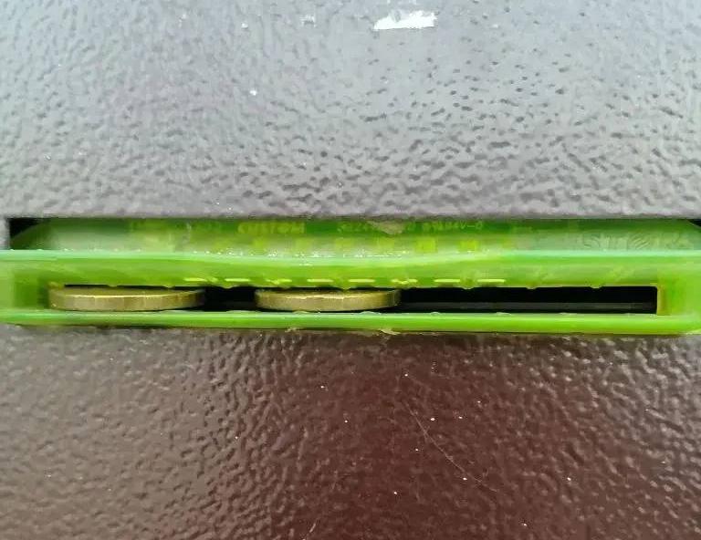 Горожане заталкивают монетки в окошко выдачи чека