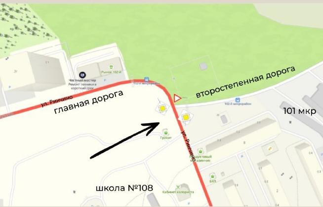 Движение по улице Ринчино в направлении школы № 108 и обратно будет осуществляться по главной дороге. Движение в направлении улицы Ченгирова и прилегающие микрорайоны и обратно – по второстепенной дороге.