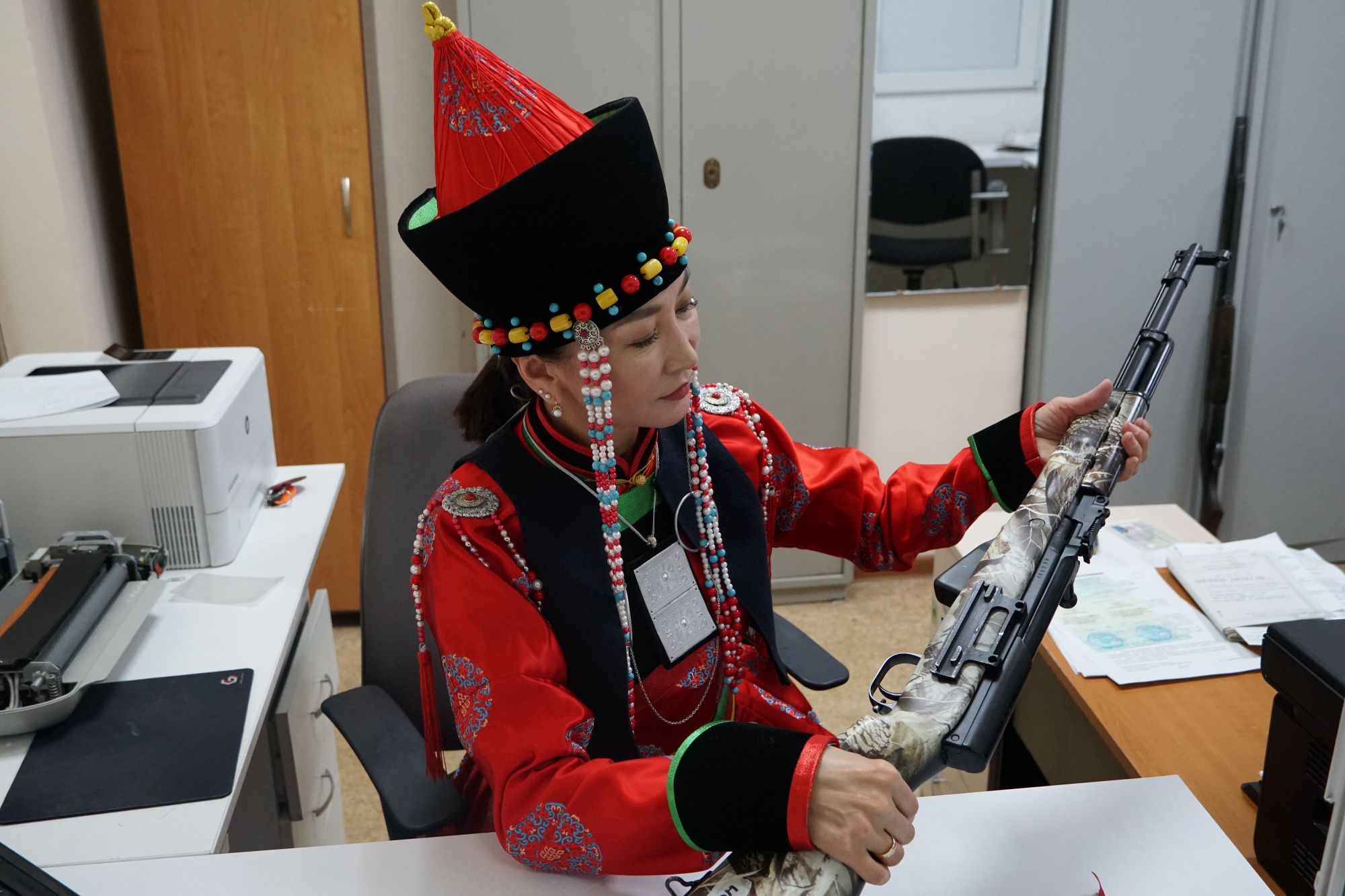 Дарима Дамбаева — майор полиции, инспектор лицензионно-разрешительной работы по городу Улан-Удэ Управления Росгвардии по Республике Бурятия.