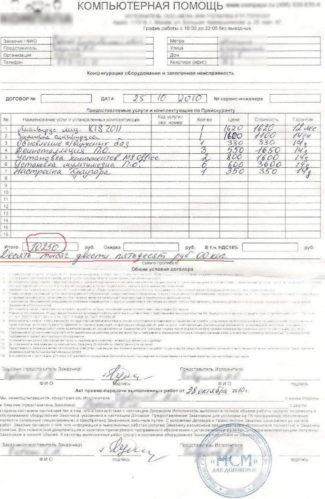 Главная ловушка заключается в том, что стоимость работ с вами не согласовывается заранее. Мастер начинает манипуляции на свое усмотрение, попутно используя агрессивный маркетинг: вас навязчиво убеждают, что без этой настройки компьютер «сгорит завтра же», специалист засыпает вас сложными терминами, чтобы вызвать чувство некомпетентности и доверия к «профессионалу».