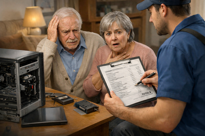 Для человека, далёкого от ремонта техники, подобные счета могут выглядеть убедительно. Но важно помнить простое правило: стандартное обслуживание компьютера не должно стоить десятки тысяч рублей — тем более дороже, чем сам компьютер.