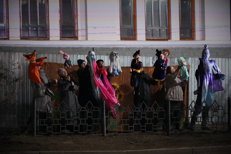 С помощью видеопроекции на стене появлялись анимированные образы кукол, дополненные световыми эффектами и музыкальным сопровождением.