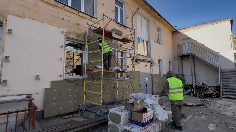 Ремонт стартовал в начале марта. Подрядчик уже демонтировал всё старое, начал выравнивать стены, утеплять фасад, менять коммуникации и кровлю. На сегодня готовность 15%, стройка идёт хорошими темпами, рабочих хватает, график соблюдается.
