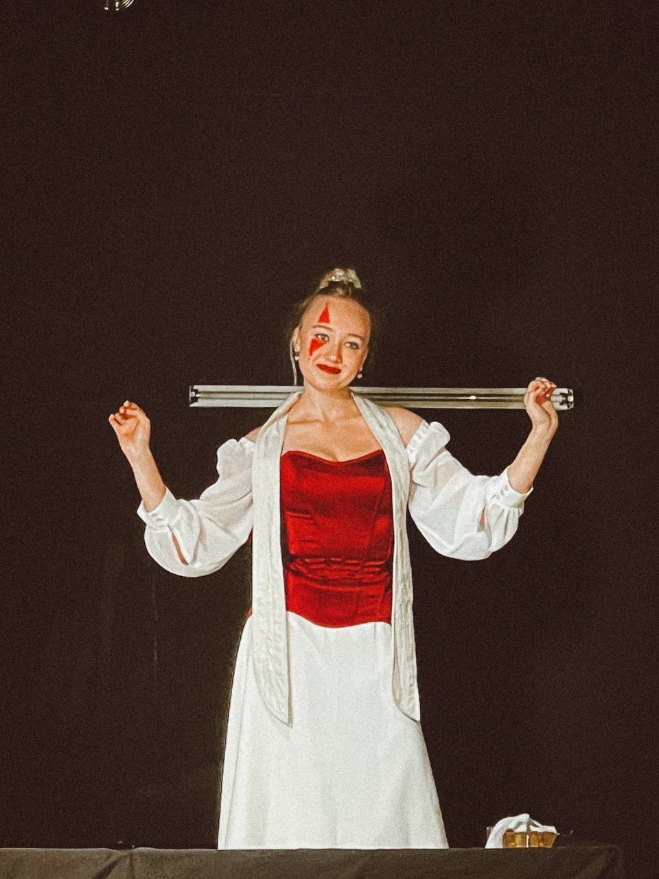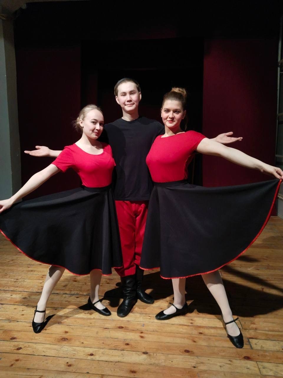 - В октябре у нас была премьера пластического спектакля «О любви четыре истории», где я исполняю роль Валентины во второй истории. Также в спектакле «Илья Муромец и Соловей-разбойник» нас в массовке очень много, я там еще Аленушку играю. А в остальных спектаклях - «Ночь перед Рождеством», «Преступление и наказание» - я ещё студенткой играла.