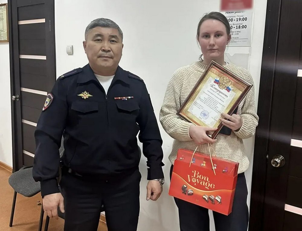 В ведомстве отметили, что в торжественной обстановке начальник профильного подразделения уголовного розыска УМВД России по Улан-Удэ Баир Жигмитов поблагодарил Анастасию Иванову за проявленную бдительность и помощь в предотвращении преступления.