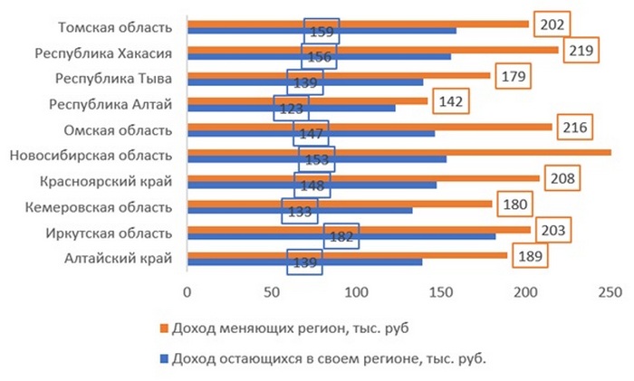 При этом в Сибирский ФО чаще всего переезжают из Республики Бурятия и Забайкальского края.