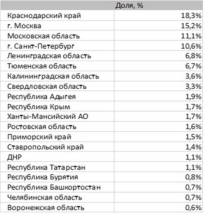 При этом 55% переездов приходятся на Краснодарский край, Москву, Московскую область и Петербург.