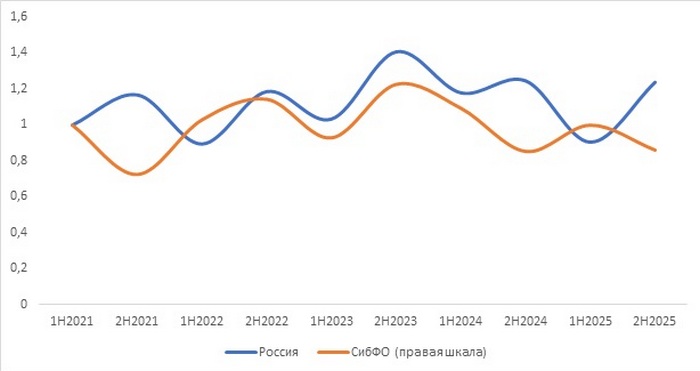 Сибирский ФО находится на третьем месте по доле ипотек, взятых в других федеральных округах. Распроданность строящегося жилья на территории округа снижается быстрее, чем в целом по стране. Однако благодаря гибкой политике застройщиков региона Сибирь относительно хорошо подстраховалась от возникновения рисков затоваренности.