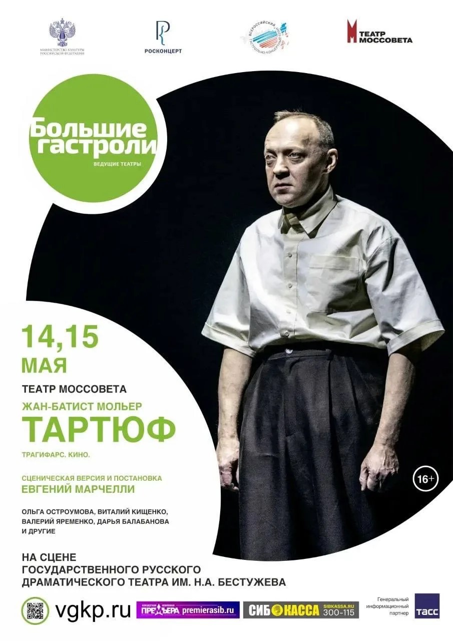 С 14 по 15 мая 2026 года состоятся «Большие гастроли» Государственного академического театра имени Моссовета в Улан-Удэ, организованные ФГБУК РОСКОНЦЕРТ согласно Всероссийскому гастрольно-концертному плану Министерства культуры Российской Федерации. В рамках направления «Ведущие театры» программы «Большие гастроли» на сцене Государственного русского драматического театра имени Н.А. Бестужева (г. Улан-Удэ) пройдут показы спектакля «Тартюф».