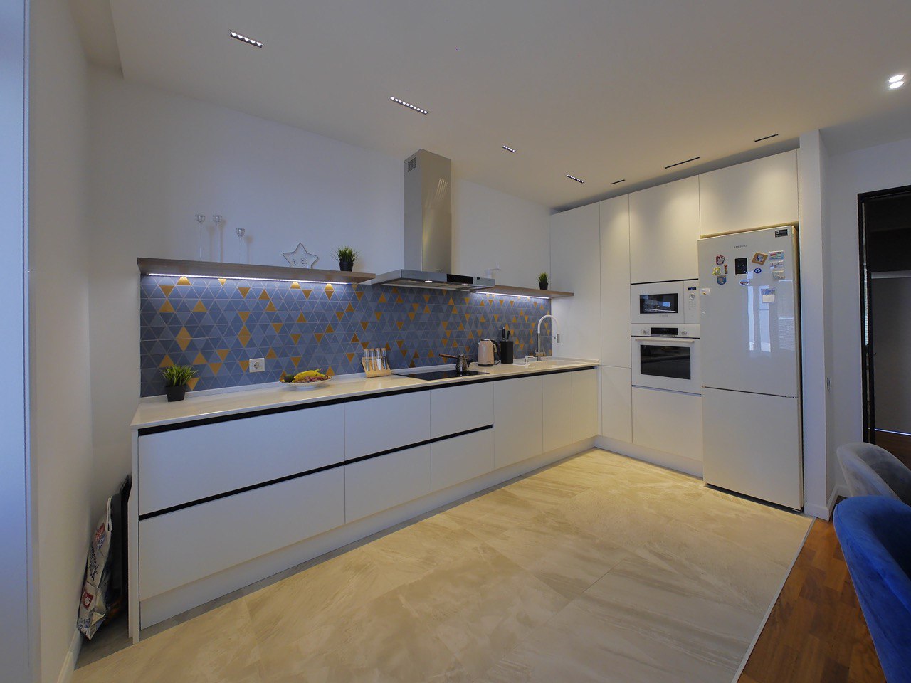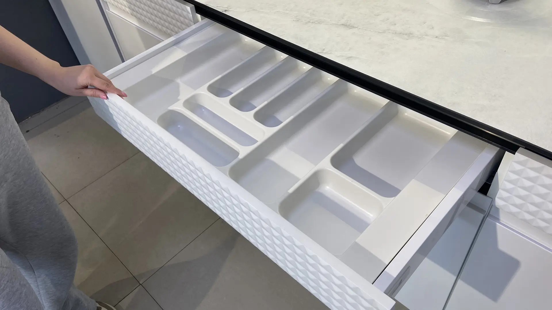 – Когда человек приходит домой с пакетами продуктов, ему должно быть удобно разгрузить их. Важно расстояние от холодильника до мойки, от рабочей поверхности до плиты. Рабочая зона должна быть просторной для комфортной готовки. Человек не бегает по кухне, в его движениях есть логика и простота: достал огурцы, сложил в мойку, порезал – всё рядом. Можно подогнать высоту нижних баз под рост человека. Кому-то нужны дополнительное место с выдвижным столом, подсветка, сенсорная вытяжка, выдвижное мусорное ведро или измельчитель отходов.