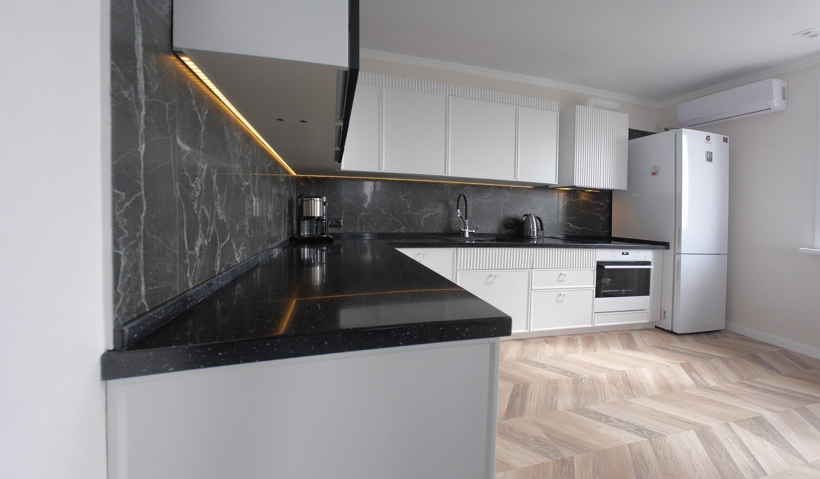 – Есть столешницы из пластика, которые встречаются чаще всего, доступны по цене и разнообразны по цветам. Есть варианты под мрамор, бетон и дерево. Есть более дорогой вариант – искусственная столешница, но здесь вариантов выбора цвета уже меньше – обычно под камень или мрамор. Если случится повреждение материала, он легко поддаётся ремонту с помощью шлифовки. В отличие от пластика, который нужно менять.