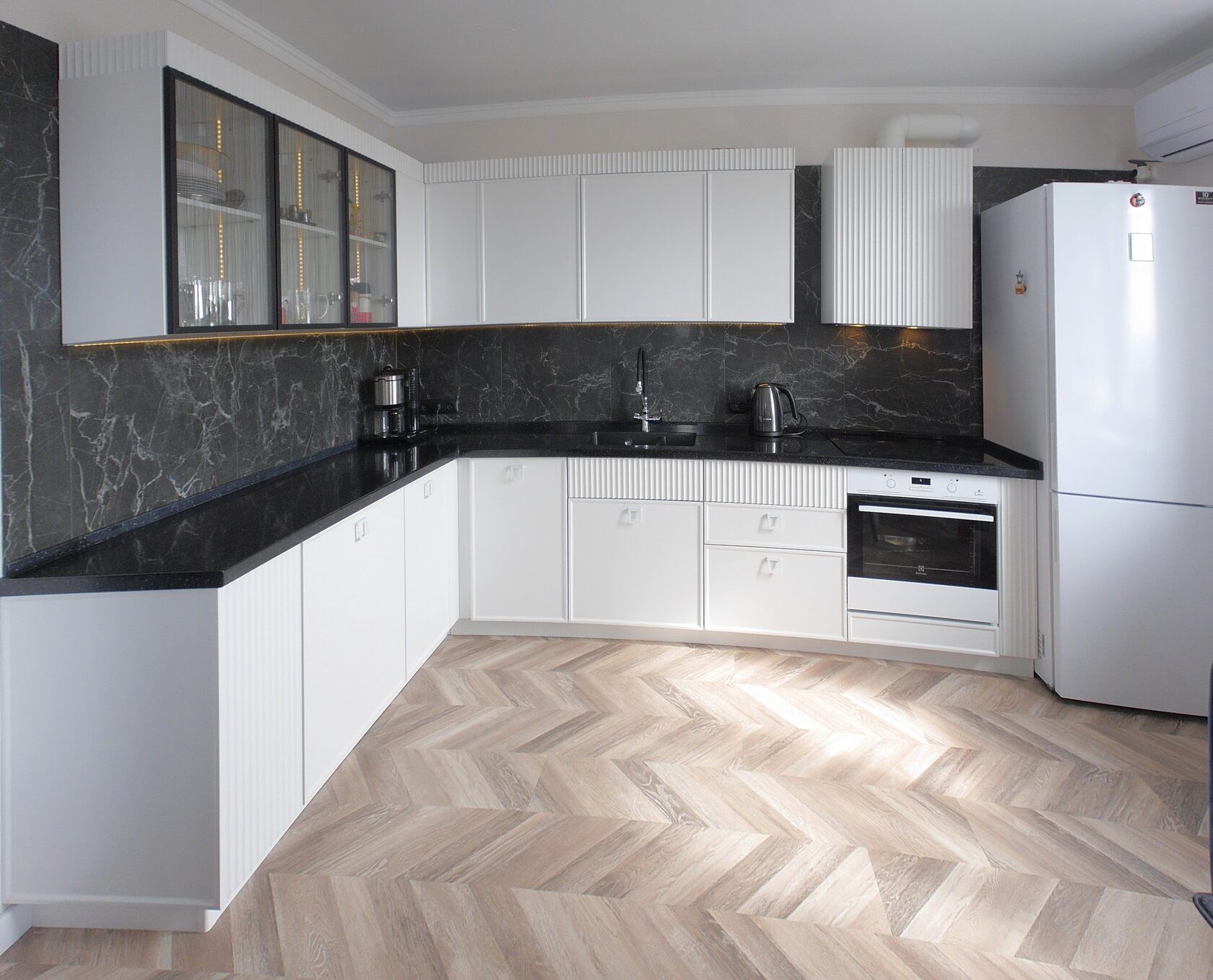 – Ещё на этапе доставки клиент должен проверить, всё ли доставлено. Для этого он получает два документа: в первом написаны название кухни, цвет и артикул; второй отражает каждую позицию поштучно. Важно проверить всё сразу, особенно фасадные элементы, потому что, если затянуть с заказом новых, они могут отличаться оттенком. Обычно мы советуем нашего сборщика, который сам всё посчитает и при необходимости запросит на склад недостающие позиции.