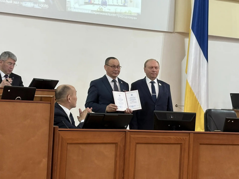 Председатель Народного Хурала Владимир Павлов отметил депутата Жамбал-Жамсо Жанаева Почётной грамотой парламента за вклад в развитие законодательной работы.