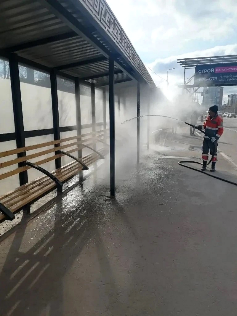 Специалисты приводят в порядок 21 памятник воинской славы. Уже отремонтировано 10 объектов. Из 12 городских скульптур вымыты 11 – остался только памятник Александру Пушкину. Параллельно усиленно моют автобусные и трамвайные остановки.