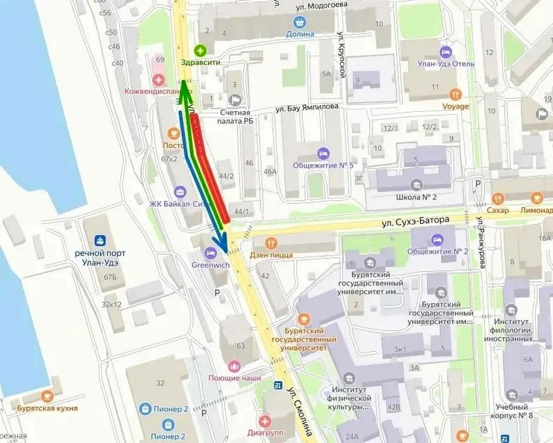 В комитете по строительству мэрии города сообщили, что ограничения затронут участок от улицы Бау Ямпилова до улицы Сухэ-Батора. Полного перекрытия дороги не планируется, однако две полосы будут закрыты для движения. Проезд организуют по левой стороне проезжей части, где останутся две свободные полосы.