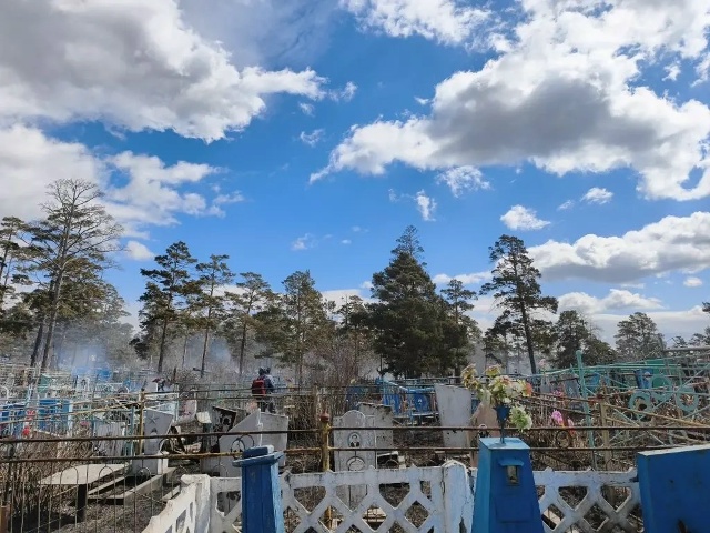 Сегодня на кладбище в микрорайоне Мелькомбинат в Улан-Удэ произошел пожар. Очаг возгорания во время планового объезда оперативно обнаружили сотрудники МАУ «Специализированная служба».