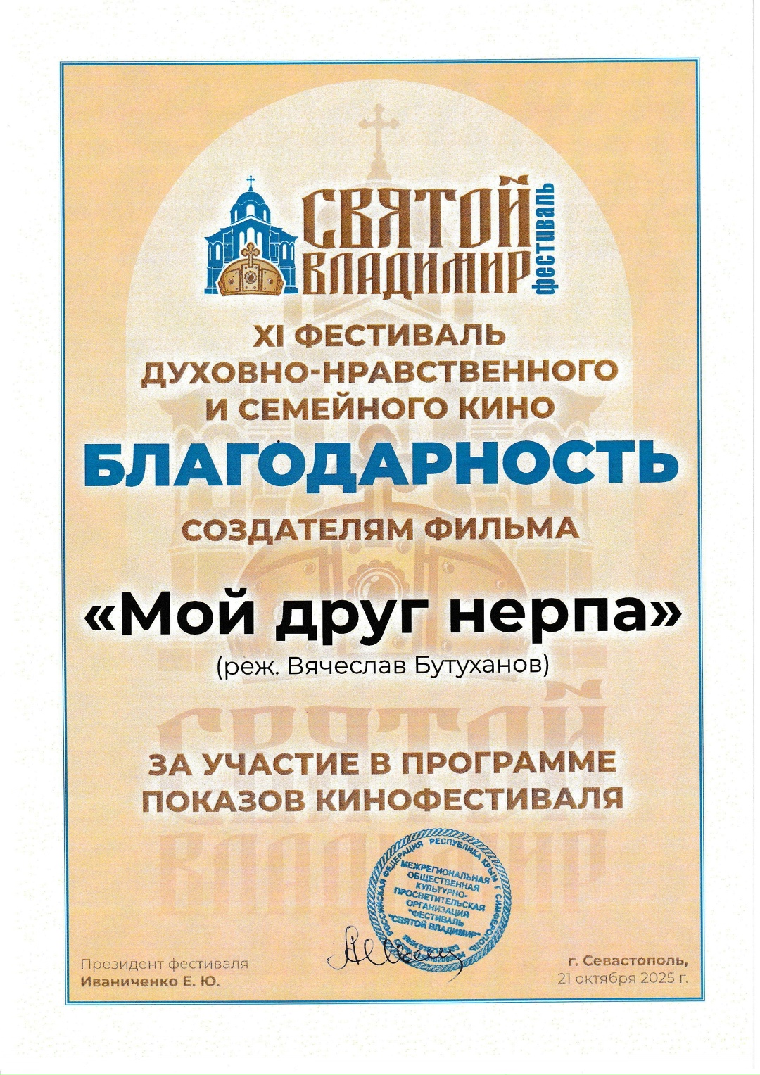 — Отношусь спокойно. Канны — это, безусловно, мечта каждого кинематографиста. Попасть на лазурный берег в Ниццу, пусть даже не в официальный конкурс, а на кинорынок, — это уже большая честь. Наш фильм — не блокбастер с многомиллионным бюджетом. Он создавался на средства субсидии Министерства культуры Бурятии при поддержке партнеров. Мы не можем позволить себе европейские презентации. Зато мы можем делать главное — снимать кино, которое нужно зрителю здесь, в России. За время фестивальной жизни «Мой друг нерпа» был отмечен рядом наград и дипломов: победитель 28-го Казанского международного фестиваля Zilant в номинации «Лучший семейный фильм» (из 680 заявок со всего мира); специальный приз жюри «За трогательный дебют» VIII Якутского международного кинофестиваля, где картина на равных конкурировала с лентами из Франции, Италии, Непала, Ирана и Индонезии; Специальный приз I Донецкого международного кинофестиваля. Состоялись показы во внеконкурсных программах фестивалей «Алтын Минбар» (Казань), «Человек и природа» (Иркутск), «Русское сердце» (Тула), «Святой Владимир» (Севастополь), «ЭФиР 74» (Челябинск), а также на Всемирном фестивале культуры в Карачи (Пакистан).