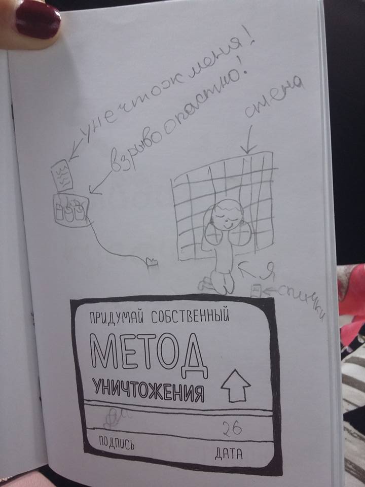 В нём есть довольно нестандартные задания – например, нарисовать что-нибудь отвратительное, перечислить все знакомые бранные слова, «собрать мёртвых жучков» или «немедленно написать фигню». Надо отметить, что такая вещь – удовольствие не из дешёвых. За неё придётся выложить более четырёхсот рублей.
