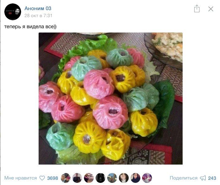 Напомним, в октябре соцсети «взорвало» фото разноцветных бууз, опубликованное в популярном паблике «Аноним 03».